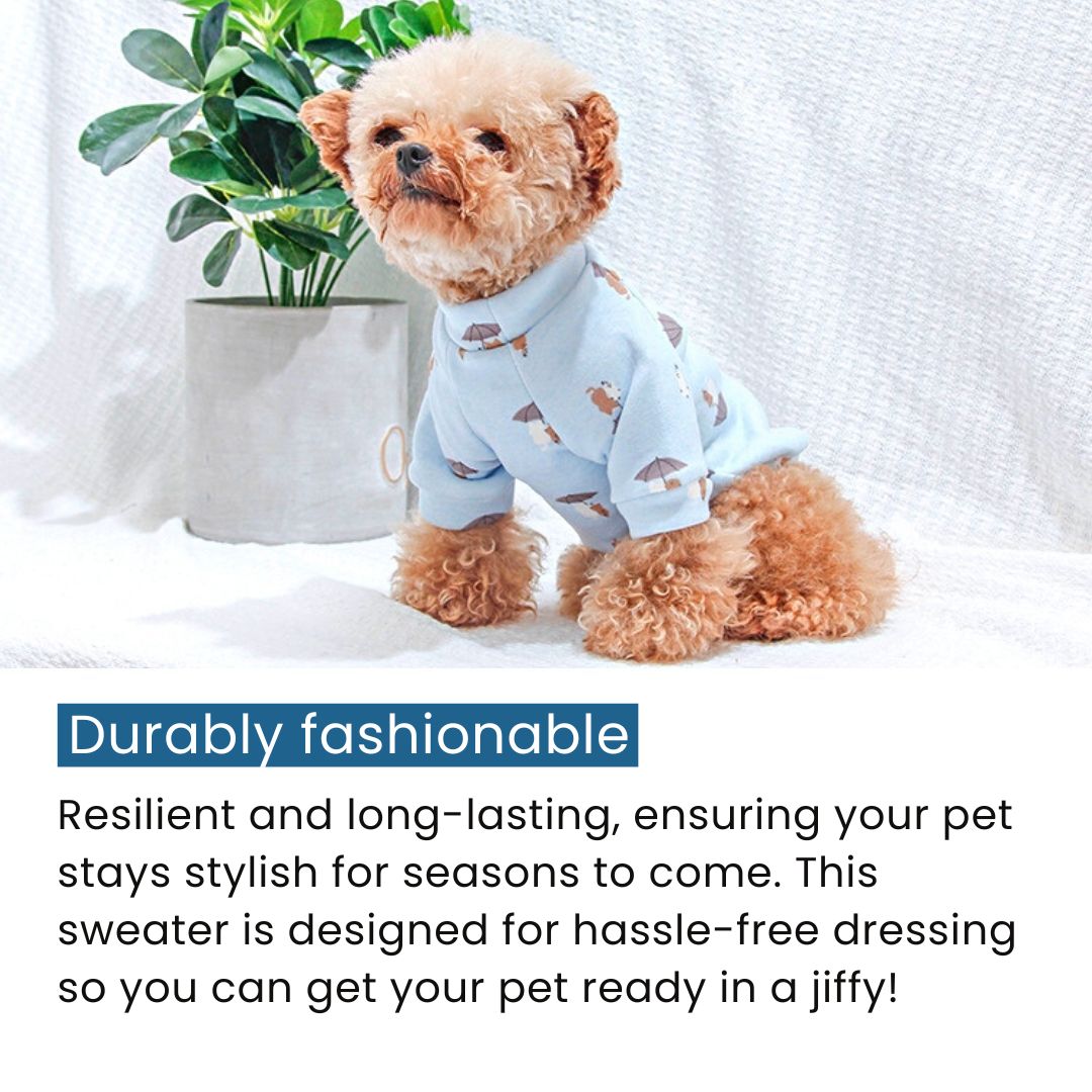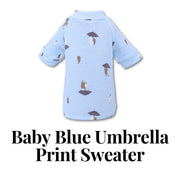 Bring home the Baby Blue Umbrella Print Sweater and let your pet flaunt the warmth of love and the joy of friendship. It's not just a cozy piece of clothing, it's a tale of warm togetherness!