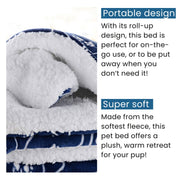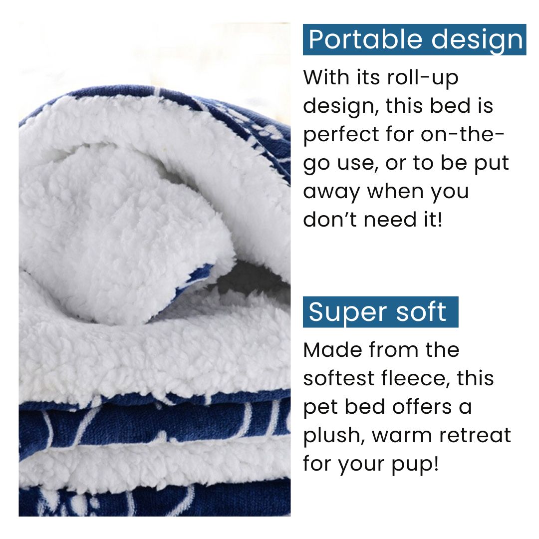 Made with ultra-soft fleece, this pet bed provides a plush and warm surface for your dog to relax on. It's like sleeping on a cloud! Easily rolled up for storage, this pet bed is perfect for space-saving or travel so you can take the comfort of home on the road!
