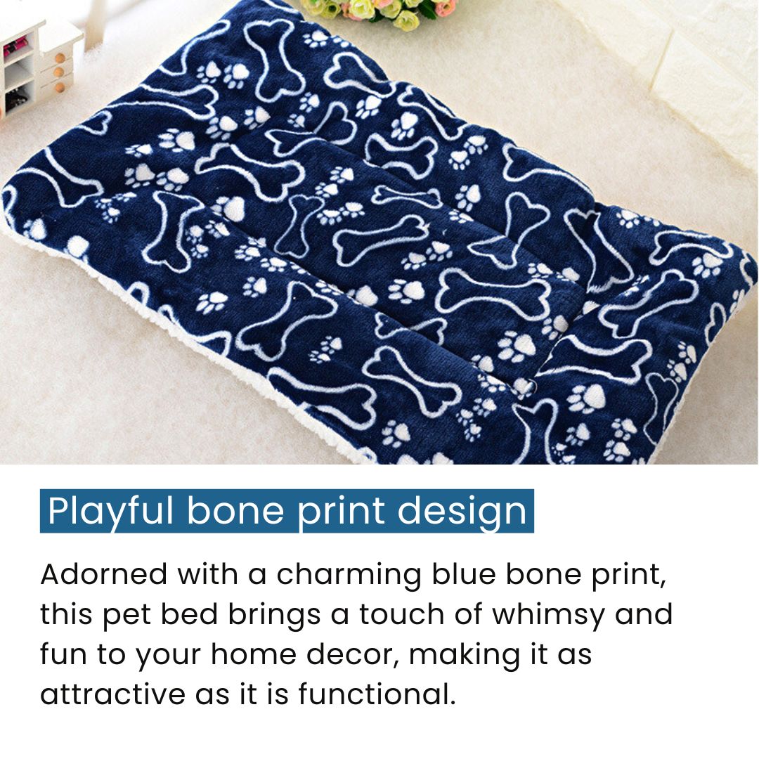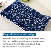 Draped in a charming blue hue and adorned with playful bone prints, this pet bed is not just a cozy nook, but a stylish addition to your home. The delightful pattern is sure to catch your pet's eye, as well as become a chic part of your home decor.