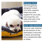 The bolster bed's raised rims are meticulously crafted to provide optimal support for your pet's head and neck, ensuring restful sleep and maximum comfort.