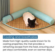 Crafted from premium suede, this corner mat is not just luxurious to the touch but also boasts cooling properties. The breathable fabric ensures optimal air circulation, keeping your pet cool and comfortable, even during the warmer months.