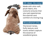 Crafted with ultra-soft, luxurious fabric that mimics the cozy feel of a winter blanket, your pooch will bask in the warmth and comfort of this deer-inspired creation.