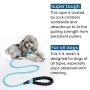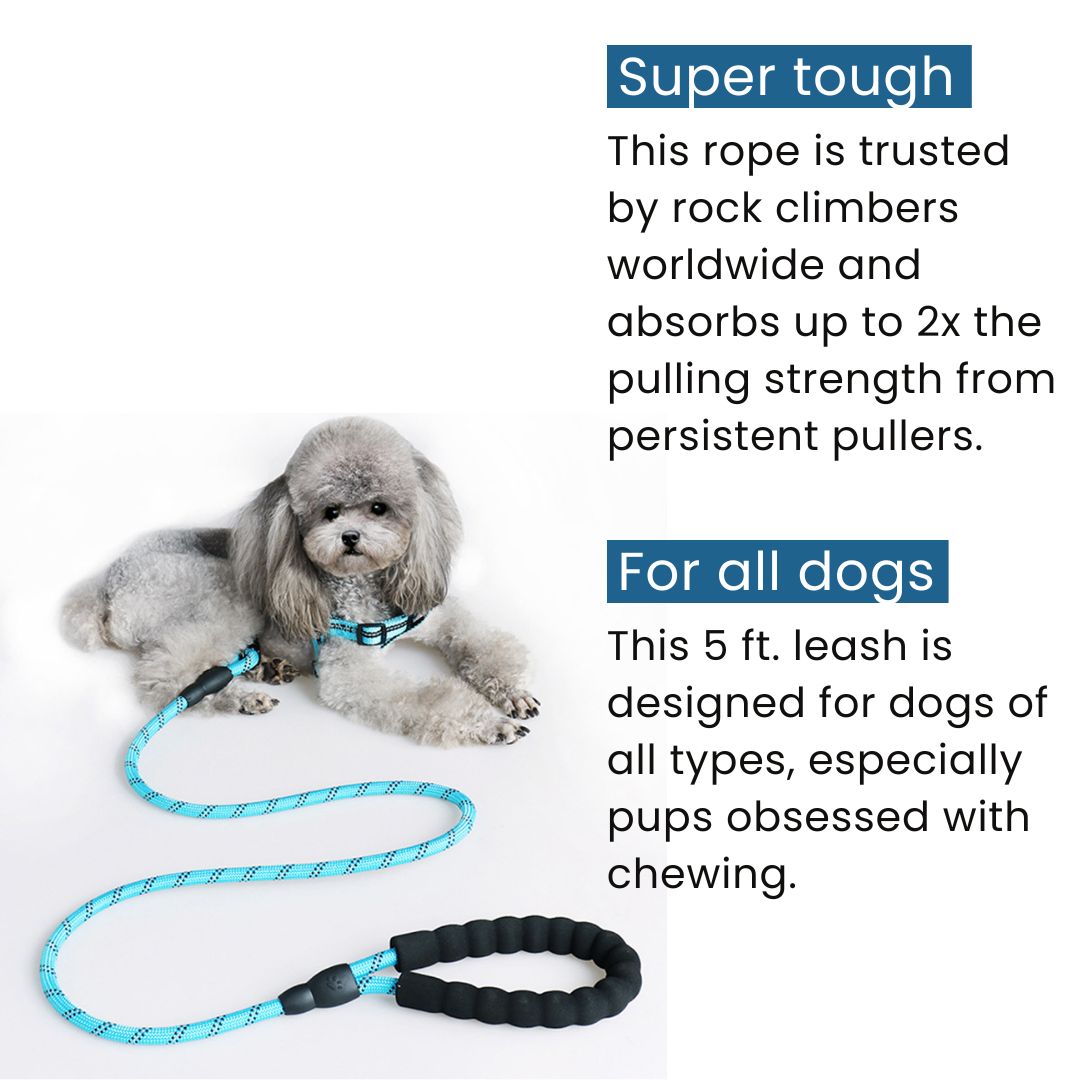 Crafted with the same long-lasting rope trusted by rock climbers worldwide, this must-have leash absorbs up to 2x the standard pulling strength. Resistant to stains and water, this material has been adopted by professional dog handlers and is designed for dogs of all types.