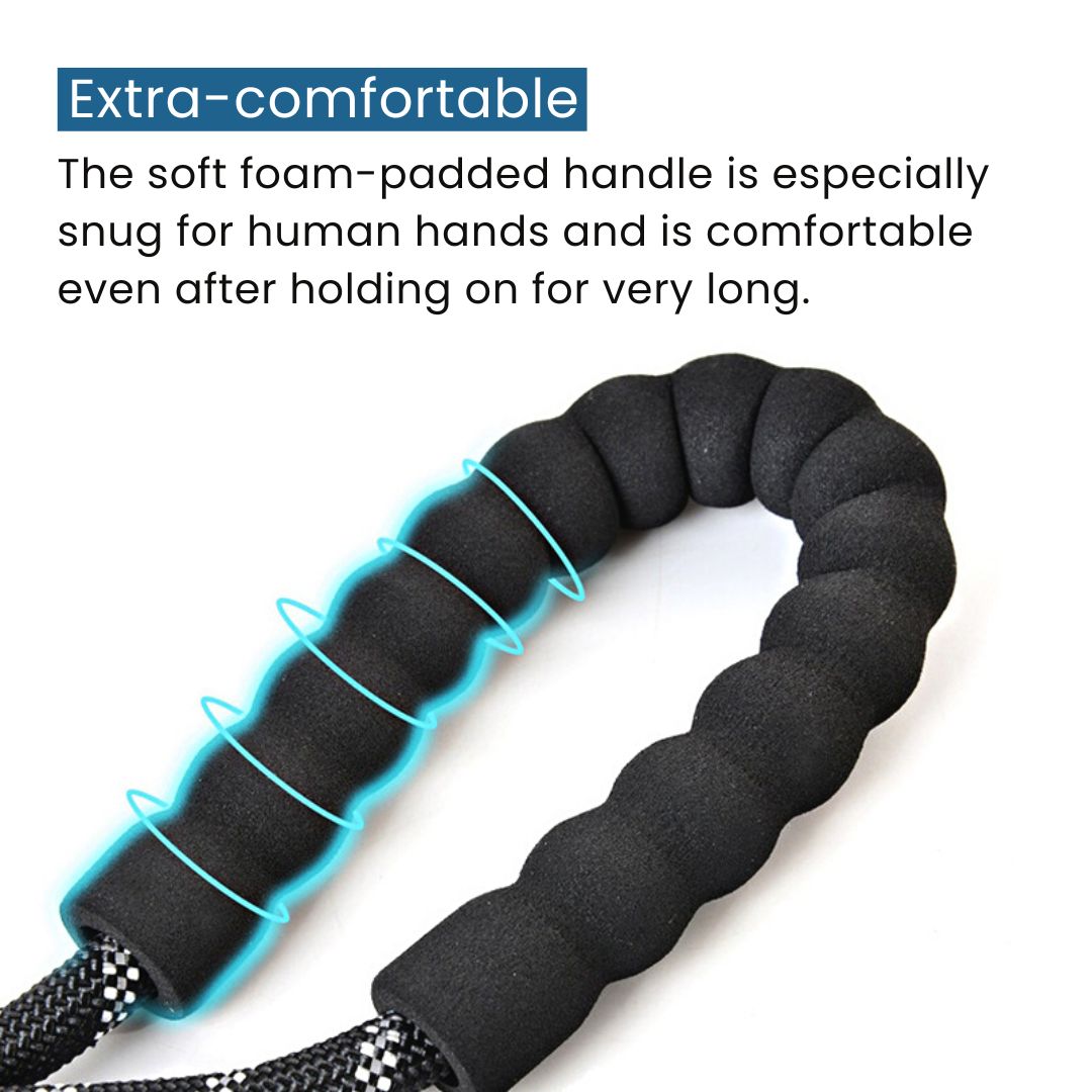 The soft foam-padded handle is especially snug for human hands and is extra comfortable even after holding on for very long. Whether you enjoy strolling around the neighborhood or taking your fur pal on adventures deep into the forest, this leash is paw-fect for you!