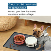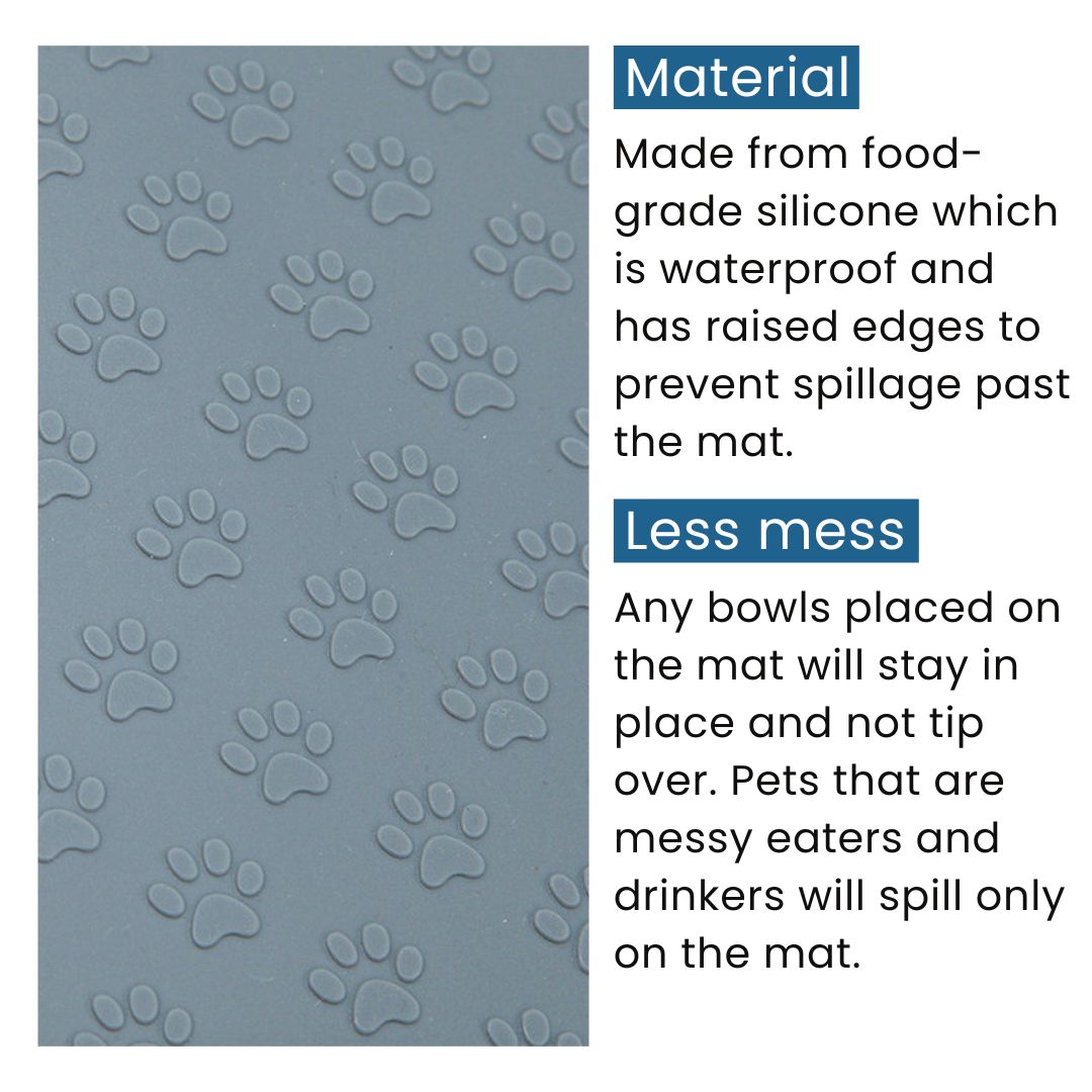 The mat also allows for bowls placed on it to stay still and stop your pets from tipping them over.