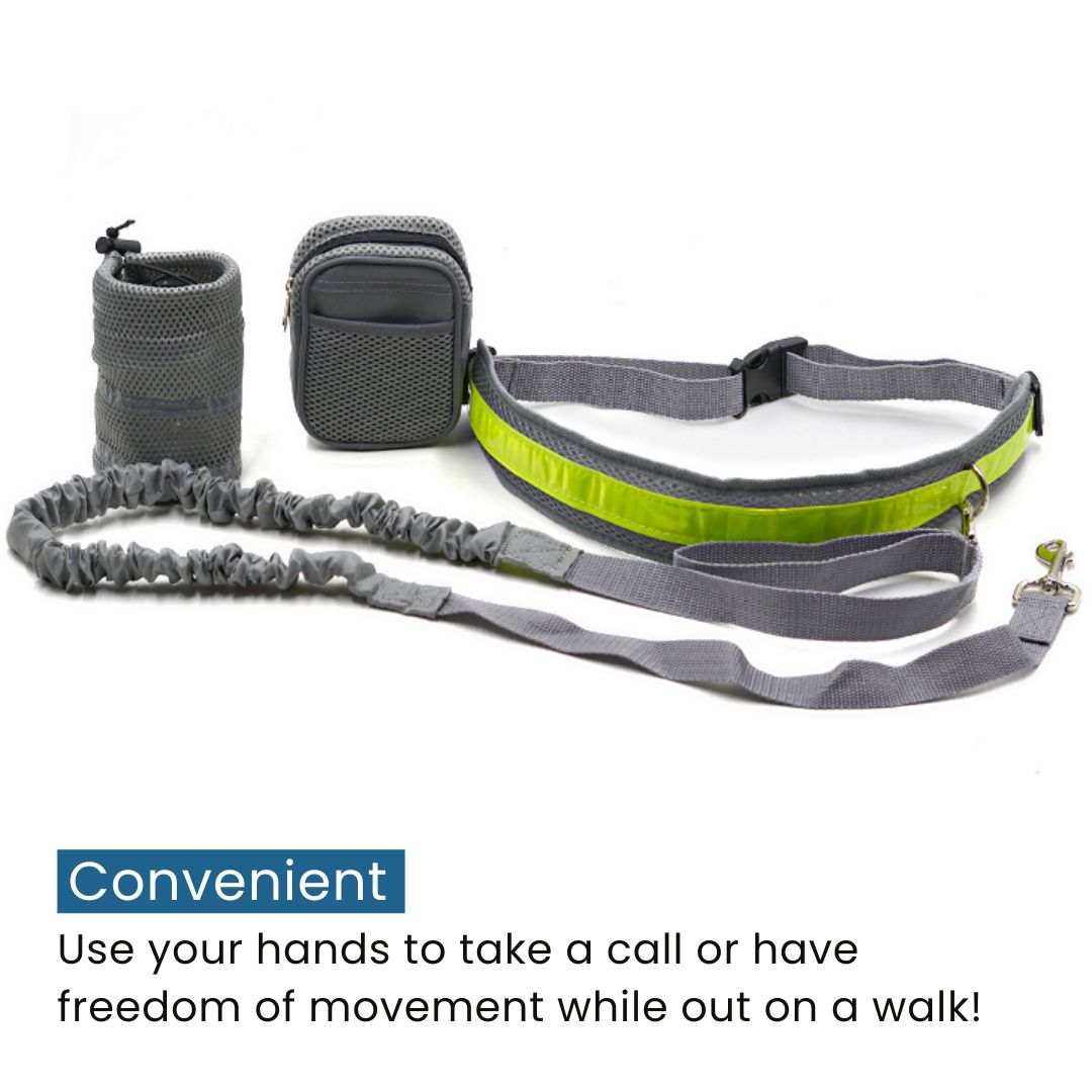 Enjoy worry-free morning runs with your furry friend with this Hands-FreeĀ Pet Leash. Ideal for any situation, the leash works by attaching a lightweight belt to your waist that comes with a leash for your pet, as well as pouches to keep your mobile phone and other items while you run outside.