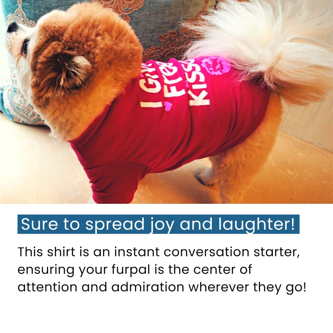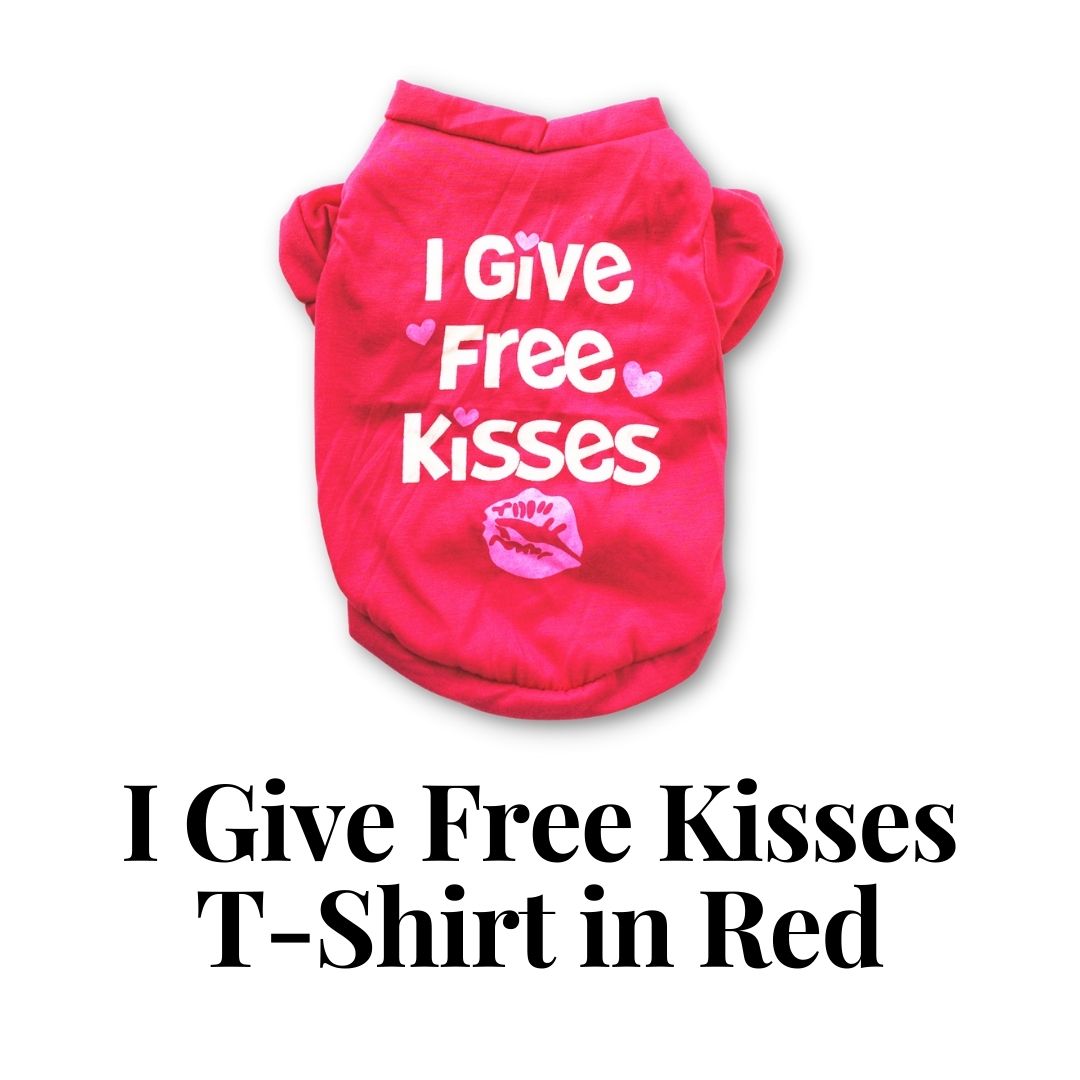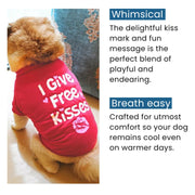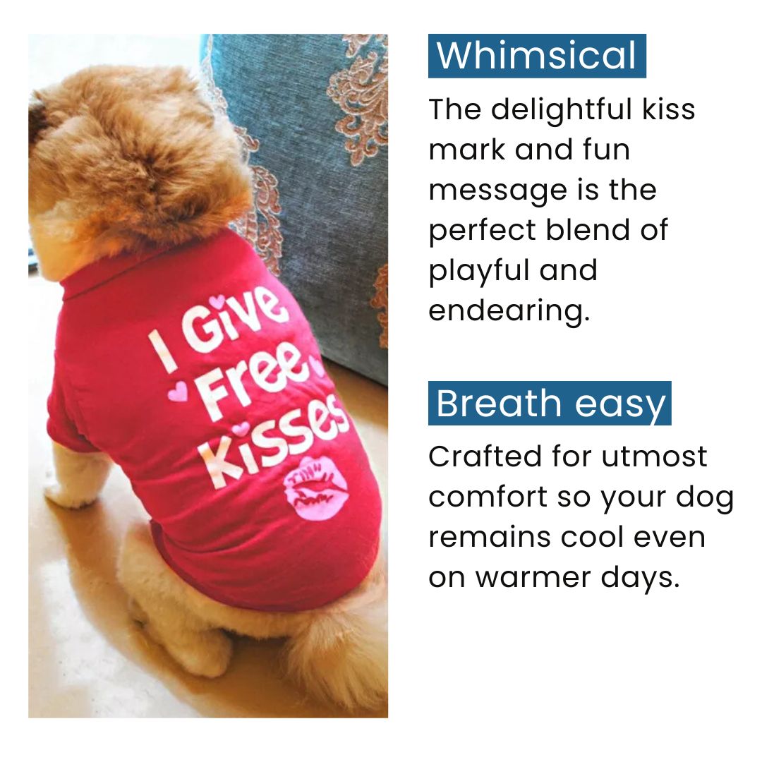 Whether it's during playdates, park adventures, or just lounging at home, let the world know of your pet’s loving nature with the I Give Free Kisses T-Shirt in Red. Because who could resist those free kisses?