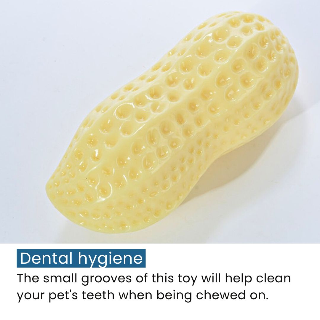 Made of thermoplastic rubber, this Peanut Chew Toy is elastic and durable, safe, and non-toxic to your pet.