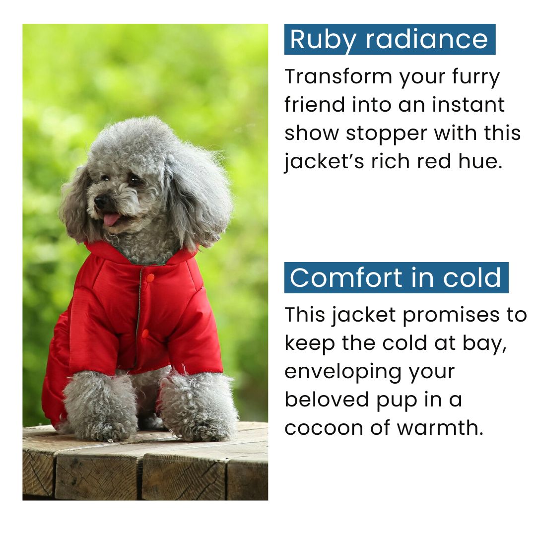 Blanketed in a vibrant shade of red, this winter jacket transforms your dog into an instant showstopper. The bold hue, reminiscent of crackling fires on frosty evenings, ensures your canine companion remains the radiant focal point of every winter scene.