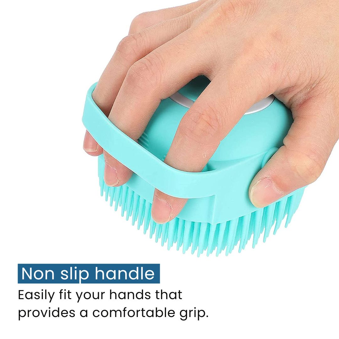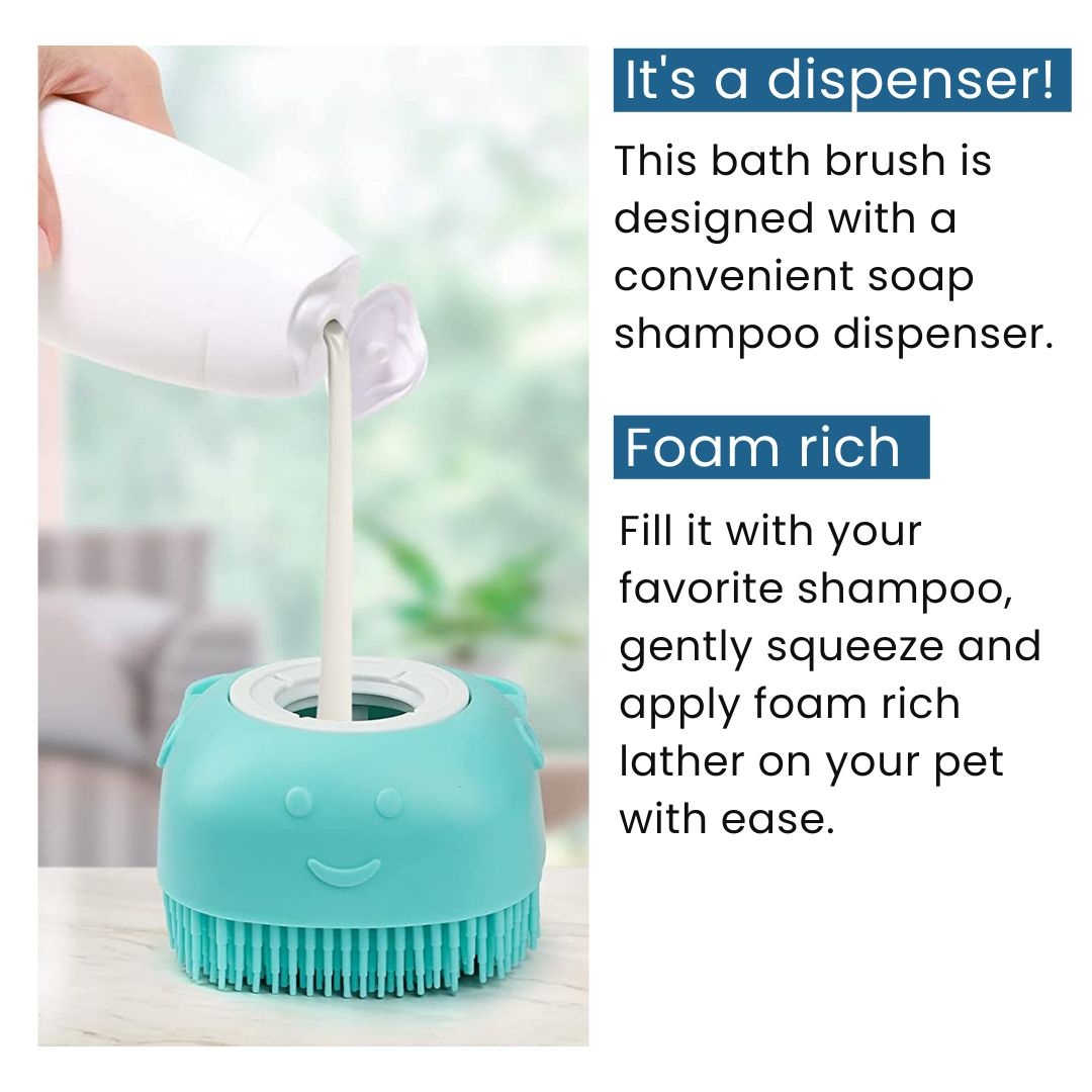 An essential item that every pet owner needs. This lightweight bath brush is an "all-in-one" dispenser, scrubber, massager, and exfoliator.
