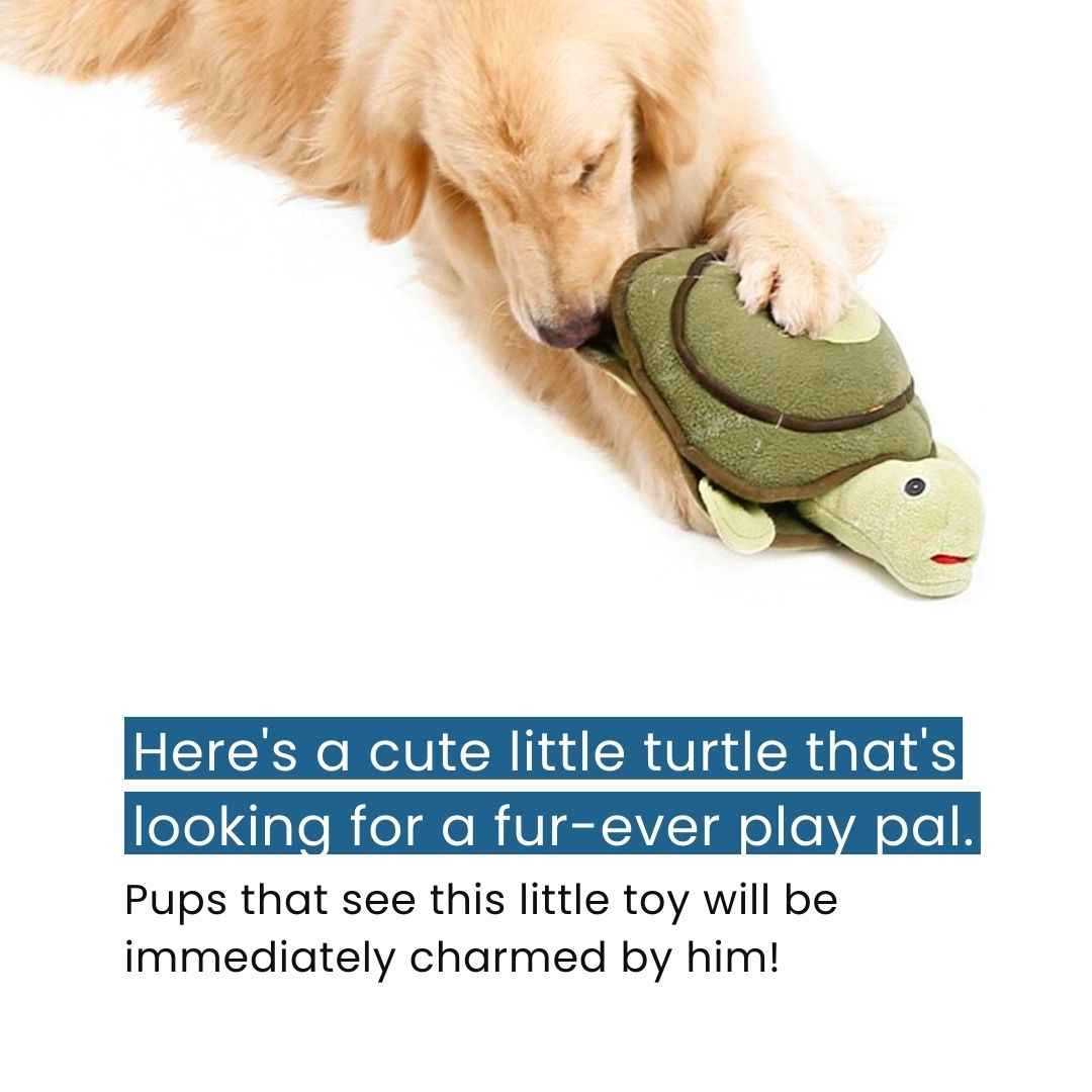 Timmy the Puzzle Turtle is a cute and skittish turtle that is looking for a fur-ever play pal. He gets along well best with other dogs - pups that see this little toy will be immediately charmed by him!