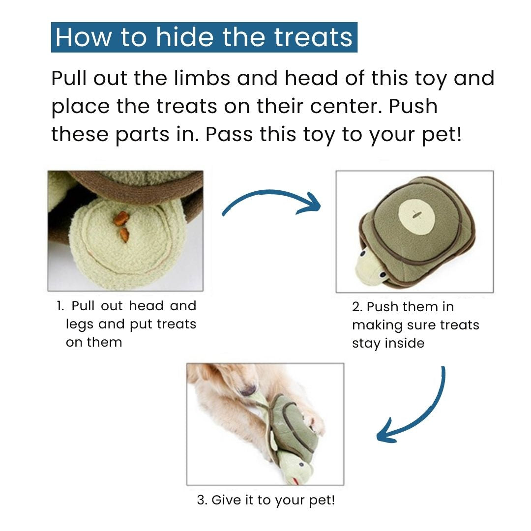 This turtle is a fun and versatile puzzle toy that provides both mental stimulation and physical exercise for your furry friend. He is a natural entertainer for pups and always transforms playtime into a wondrous and sensational experience!
